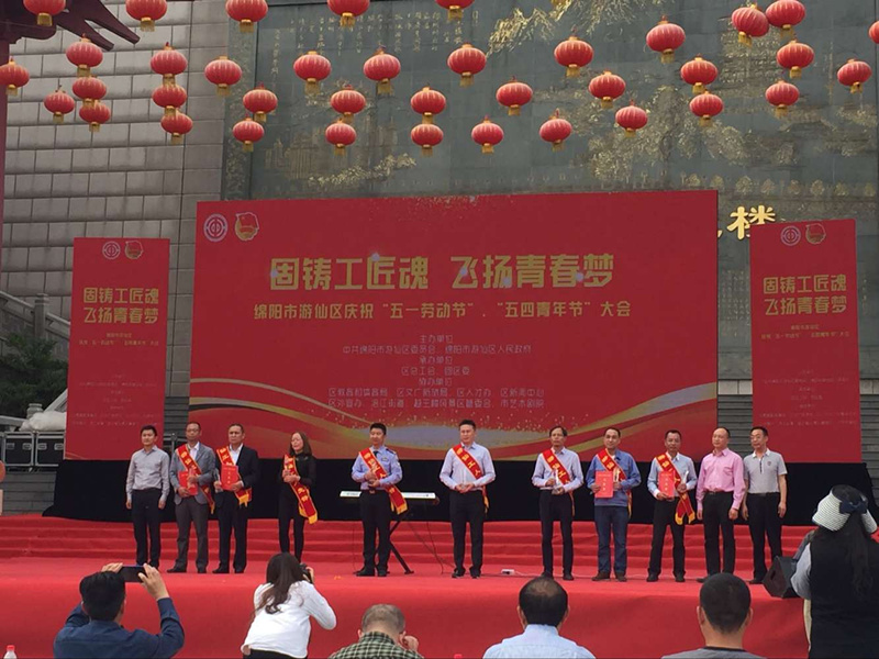 4月27日下午3點(diǎn),綿陽市游仙區(qū)慶祝“五一勞動節(jié)”、“五四青年節(jié)”大會在越王樓廣場舉行。我公司新材料研發(fā)部部長黃杰榮獲綿陽市游仙區(qū)2017年“工人先鋒”稱號,并在本次大會上受到表彰。